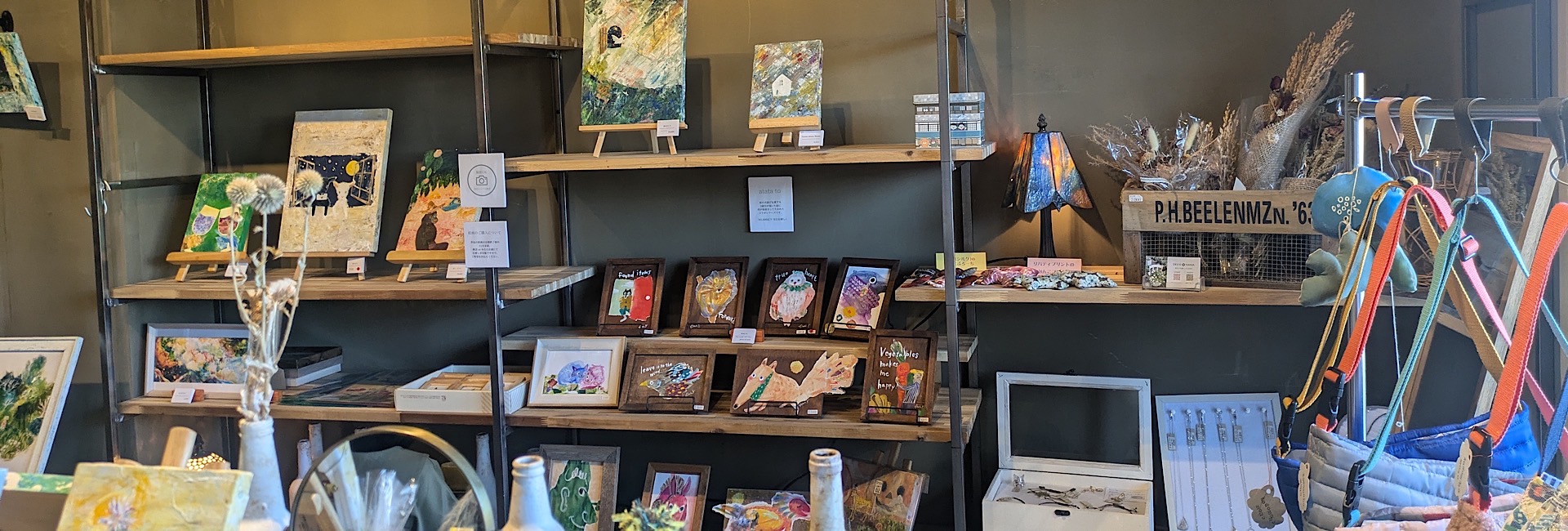 ギャラリー/カフェスペースは貸し出しをしており、時期によって色々な展示をお楽しみいただけます!